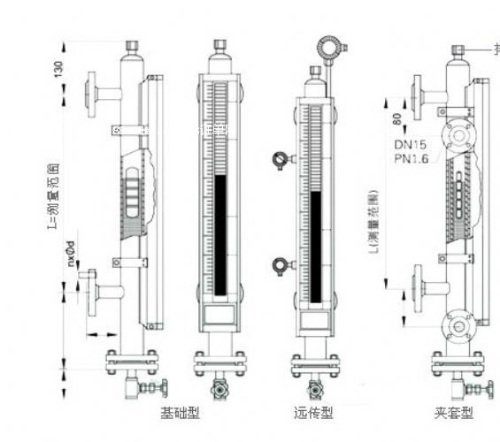磁翻板液位計安裝于桶槽外側(cè)延伸管上,桶槽內(nèi)部的液位能由翻板指示器清楚得知。產(chǎn)品適用于易燃、易爆和腐蝕有毒液位檢測,且具有就地顯示直讀式特性,旁路管外側(cè)亦可加裝磁性開關(guān)和遠傳(輸出0 ~5 vdc或4 ~2 0 ma ) ,做為電氣接點信號輸出和遠距離液位信號傳送。