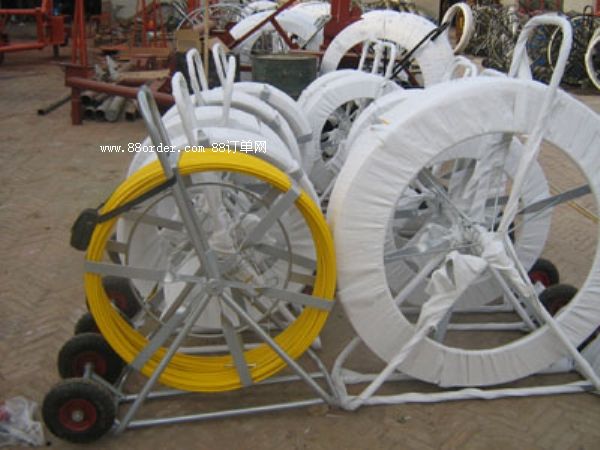 穿線器有內(nèi)置鋼芯或銅芯,玻璃纖維層,高強(qiáng)度聚乙烯防護(hù)層構(gòu)成,玻璃鋼穿線器具有省時(shí),省力,提高工效等優(yōu)點(diǎn),可用于電信管道清洗及光纜,電纜和塑料子管的布放。使用時(shí)首先將玻璃鋼覆桿由引輪引出,然后與相應(yīng)的金屬頭聯(lián)接,穿入管路內(nèi)。用于清理時(shí),引導(dǎo)頭帶動(dòng)清理工具,可以清理管道;用于布放電纜時(shí),可先將鋼絲或鐵線帶入,爾后用鋼絲或鐵線牽引電纜入管.是電力施工種不可或缺的工具之一。