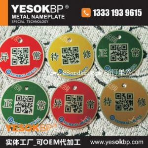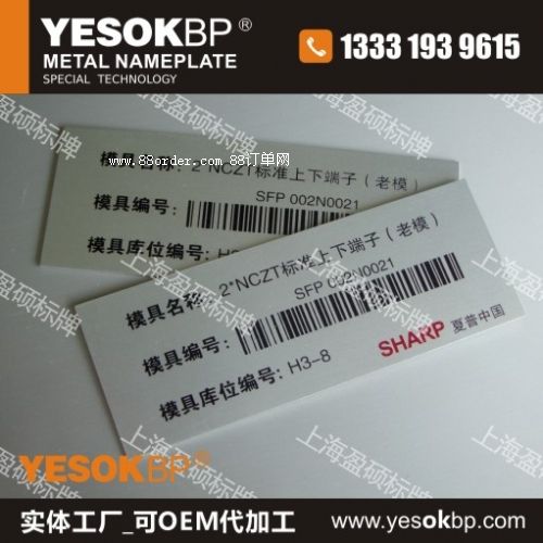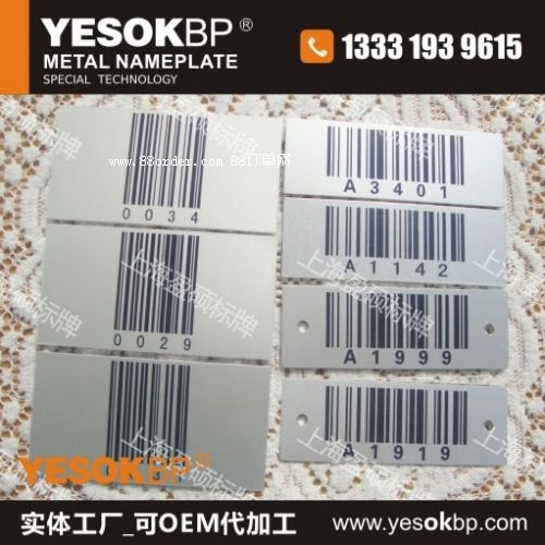 上海盈碩標(biāo)牌制造有限公司致力于金屬條形碼、不銹鋼條形碼、鋁氧化滲透標(biāo)牌,機(jī)械銘牌高端產(chǎn)品,服務(wù)于工業(yè)裝備、船舶工業(yè)、電廠,穩(wěn)定的化學(xué)性能符合出口標(biāo)準(zhǔn),滿足惡劣的工業(yè)環(huán)境需求。