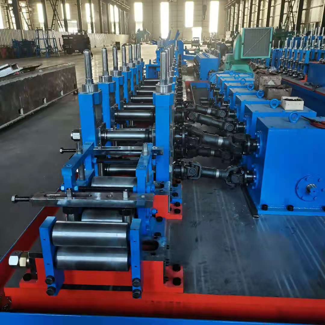 32高精度高頻焊管設(shè)備簡(jiǎn)介加工范圍加工材質(zhì)普通碳素鋼管子厚度1-2mm管子尺寸16-32mm開卷機(jī)液壓站 內(nèi)徑φ450-φ550mm外徑φ1200-φ1700mm帶鋼寬度50-100mm承重最大1700kg剪切對(duì)焊寬度50-100mm厚度1-2mm籠式儲(chǔ)料倉帶鋼寬度50-100mm喂料速度 電機(jī)5.5kw成型定徑機(jī)水平軸徑材質(zhì)φ55mm,材質(zhì):40cr。軸承型號(hào)22208立輥軸徑材質(zhì)φ30mm,材質(zhì)40cr。軸承型號(hào)6206導(dǎo)向軸徑材質(zhì)φ30mm,材質(zhì):40cr擠壓軸徑材質(zhì)φ30mm,材質(zhì):40cr刮刀2把冷卻1個(gè)土耳其頭4輥式壹架電機(jī)90kw電腦飛鋸管厚度1-2mm切斷長(zhǎng)度4-12鋸切電機(jī)15kw運(yùn)行電機(jī)15kw速度20分/次下料輥道傳動(dòng)輪鏈條傳動(dòng)長(zhǎng)度12米固態(tài)高頻100kw