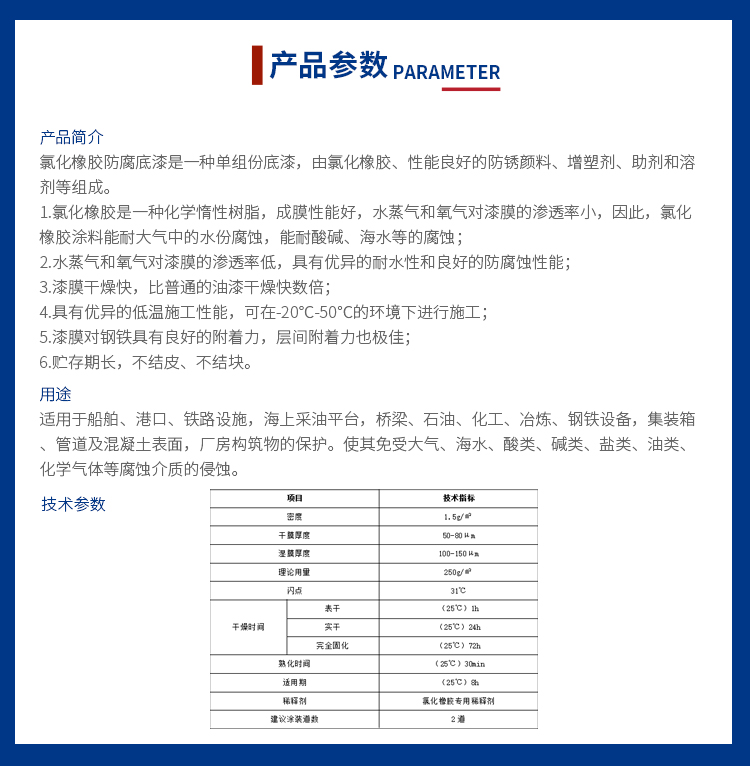 船舶集裝箱外壁化學管道用氯化橡膠防銹底漆成膜性能好
