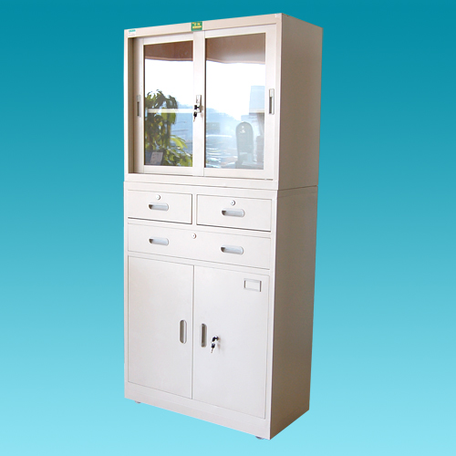 5、材質(zhì):0.6mm寶鋼優(yōu)質(zhì)冷軋鋼板制作,連體,上部玻璃移門,下部鐵移門,有鎖,上下各配1塊活動層板,外殼采用進(jìn)口冷軋鋼板,并采用酸洗,磷化,靜電粉末噴制等工藝,防銹好,堅固耐用
