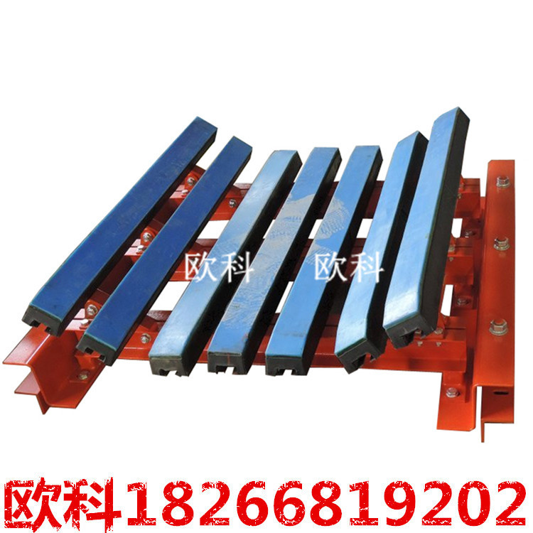 緩沖床主要用于替代緩沖托輥,緩沖床由緩沖條組成,而緩沖條主要應(yīng)用優(yōu)良的高彈性特種橡膠層充分有效吸收了物料下落時的沖擊力,大大降低了物料下落時對輸送帶的沖擊,真正的改善了落料點(diǎn)的受力狀況。并采用特殊的uhmw高分子聚乙烯表面,使輸送帶與緩沖條之間的摩擦系數(shù)降到最低,且耐磨性好。緩沖床的使用保證了輸送帶的面與面的接觸,受力均勻,有效防止了由于托輥斷裂、脫落造成的皮帶縱向撕裂,同時大大降低了皮帶被銳器或尖銳物料穿透后縱向撕裂的概率。