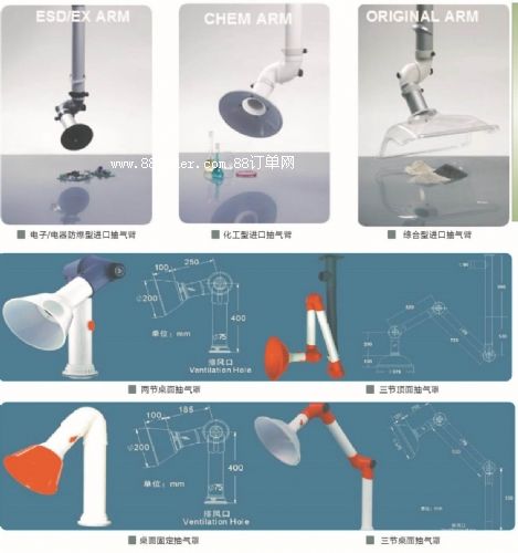 抽風罩說明:抽風罩位于通風柜頂部,為pp材質(zhì)一次注塑成型,排風口徑為¢250mm.