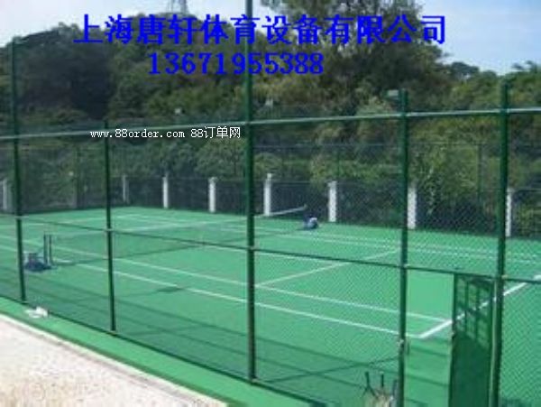 選用優(yōu)質(zhì)低碳鋼絲。   編織方法:   編織焊接而成。   規(guī)格:   1. 包塑絲經(jīng):3.8mm ;   2. 網(wǎng)孔:50mm x 50mm;   3. 尺寸:3000mm x 4000mm;   4. 立柱:60/2.5mm;   5. 橫柱:48/2mm;   防腐處理:   電鍍、熱鍍、噴塑、浸塑處。   優(yōu)點:   具有防腐、防老化、抗曬、耐候、色彩鮮亮、網(wǎng)面平整,強力張緊,不易受外力撞擊變形、現(xiàn)場施工安裝、靈活性強(可根據(jù)現(xiàn)場要求隨時調(diào)整造型和尺寸)。   可選顏色:   藍色、綠色、黃色、白色等球場圍網(wǎng)球場圍網(wǎng)球場圍網(wǎng)球場圍網(wǎng)球場圍網(wǎng)球場圍網(wǎng)