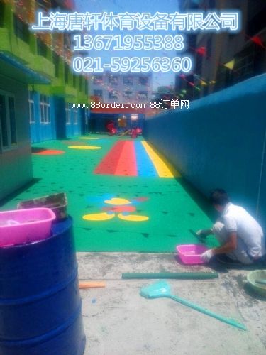 5塑膠地坪產(chǎn)品特性:由各種顏料橡膠顆;騟pdm顆粒為面層,黑色橡膠顆粒為底層,由粘著劑經(jīng)過高溫硫化熱壓所制成,此產(chǎn)品環(huán)保且具有高度吸震力及止滑效 果,減少?gòu)母咛帀嬒露斐傻膫,提供大人或小孩在運(yùn)動(dòng)時(shí)的保護(hù)作用及舒適感。此種安全性地墊,長(zhǎng)久耐用、容易清潔,適合鋪設(shè)于室內(nèi)外的地面適用于各種場(chǎng)地。