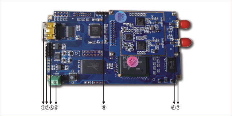 ⑵ 外接主板口:外接到發(fā)射主板上的插口(3.3v,gnd,rx,tx一一和上面⑤對應)