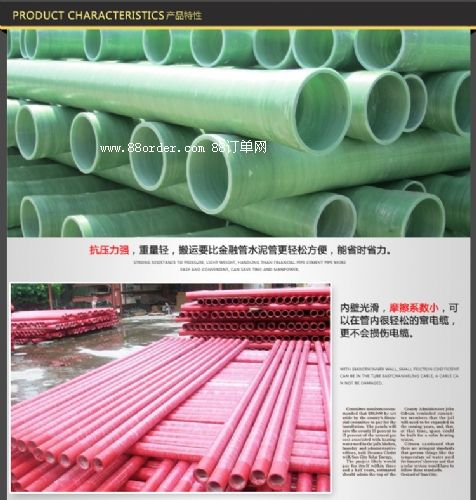5、因混凝土導(dǎo)管的笨重,造成了施工困難、工作效率底下,玻璃鋼電力管的應(yīng)用,使上述難題迎刃而解。