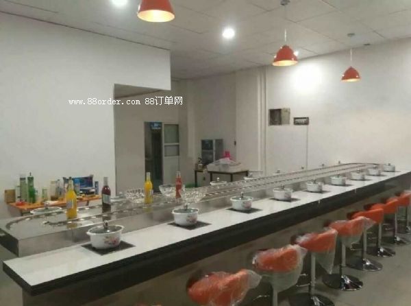 食客在各自的座位上可隨意選擇擺放在輸送帶上的食品,無(wú)需服務(wù)員送上,本機(jī)以臺(tái)架代替餐桌,可節(jié)省大量餐桌及臺(tái)布。3、餐點(diǎn)再旋轉(zhuǎn)中運(yùn)用明亮的燈光及輸送帶的移動(dòng)讓餐點(diǎn)變的更可口,